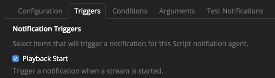 Select the triggers that will be used to run the script. (e.g. Playback Start, Playback Stop).