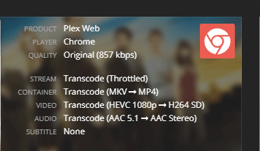 You can view the information that Tautulli has parsed from the raw XML data for a particular stream by single clicking on the STREAM word in an activity card: